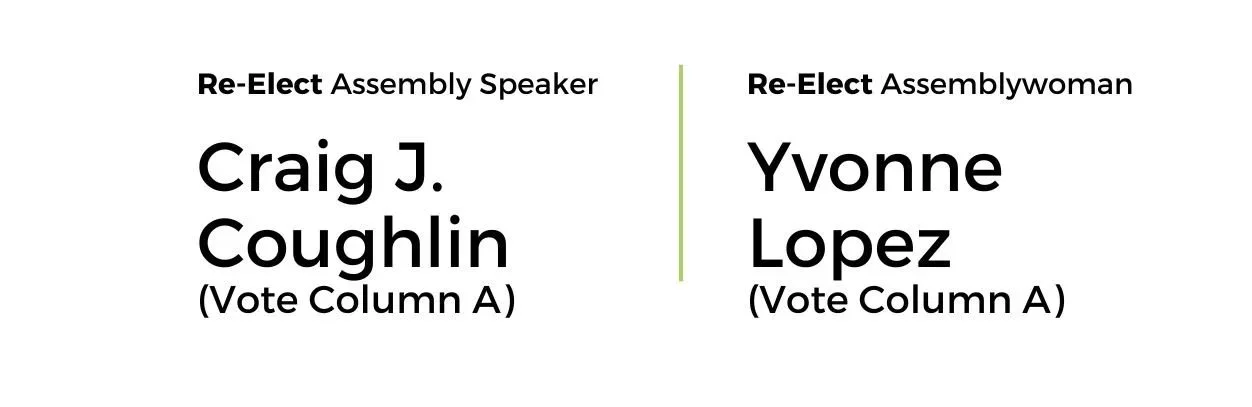 Speaker Craig J. Coughlin: Speaker Craig J. Coughlin knows the value of hard work. A former judge, small business owner, and local leader, he rose to become Assembly Speaker, where he has become a national leader in the fight against food insecurity, worked to lower costs, and has brought back more resources home to our district. Raised by a single mom and a loving family man, he’s dedicated his life to fighting for our families and businesses because for him, this isn’t politics, it’s home.